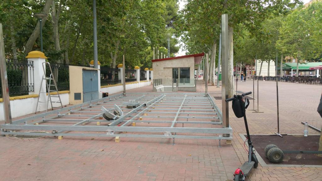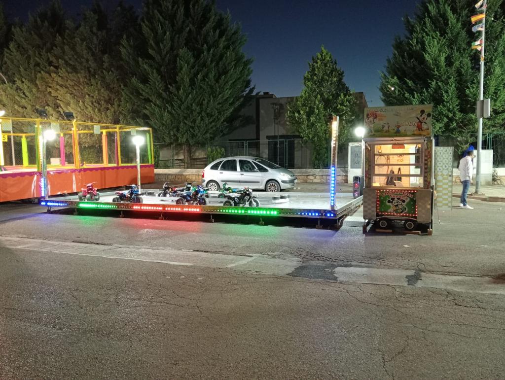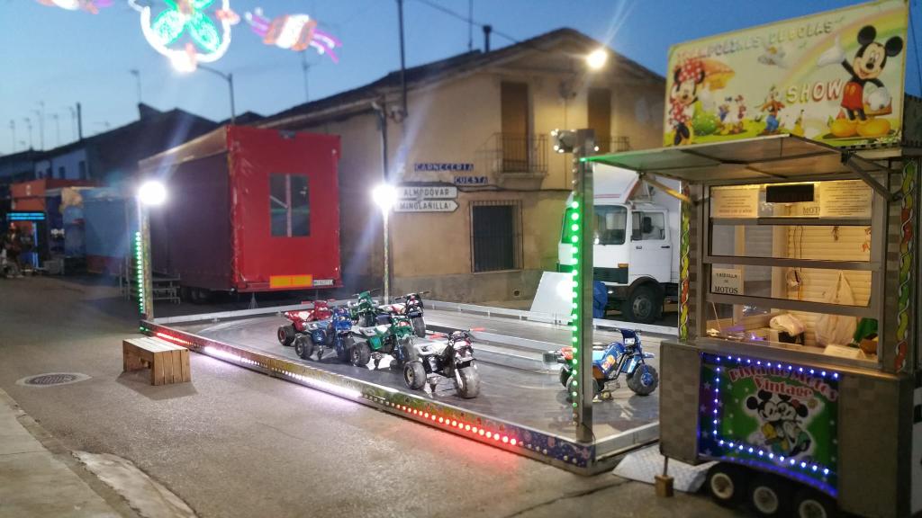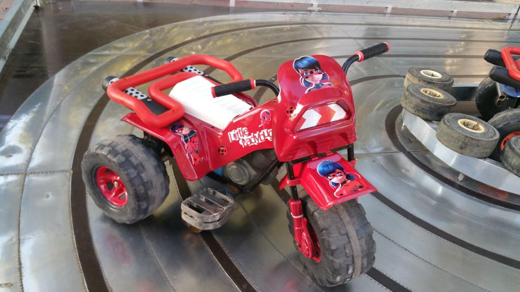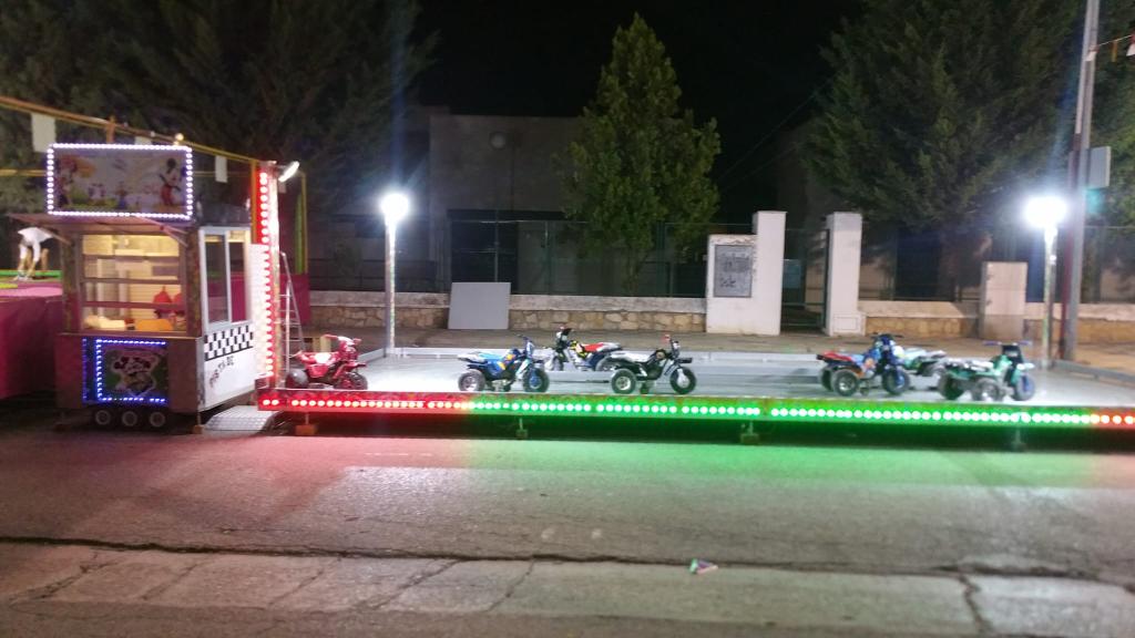chapas taquilla columnas barandillas en acero inoxidable, tablero finlandes, 9 motos. 5 trampolines. toda la base cincada, luces de led, está funcionando, lista para trabajar,