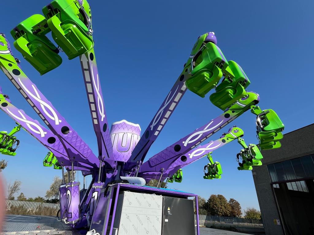 Looking to purchase a new, highly successful ride? The JUMP SPIN is the perfect ride for your investment, with 24 passenger seats, two compressors, and a software system that guarantees thrills for passengers. Available in a semi-trailer or a fixed version for amusement parks.